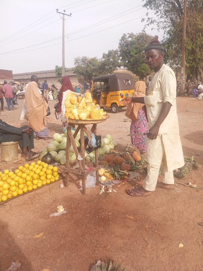 The scene is an outdoor market located in Kakuri Gwari, Nigeria
