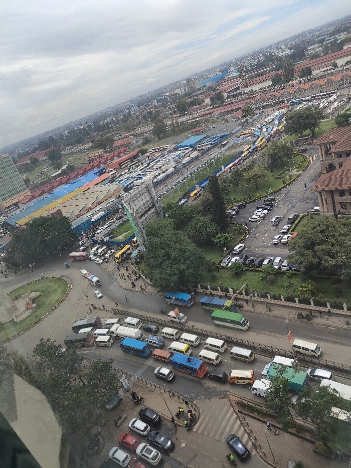 - "An aerial, slightly tilted view depicts a congested urban scene in central Nairobi, Kenya, specifically overlooking the Machakos Country Bus Station (Muthurwa Bus Terminus) and its surrounding road networks, with the Kenya National Archives building situated to the right" by FM-rWe5U2, licensed under CC BY 4.0