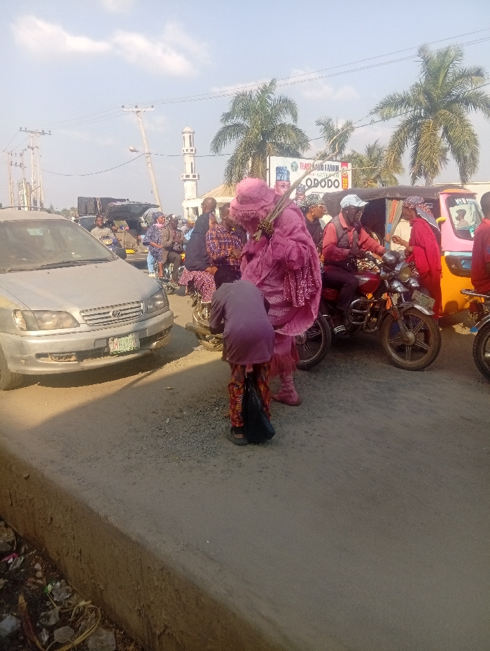 This image captures a busy daytime street scene at Itakpe Junction, Nigeria