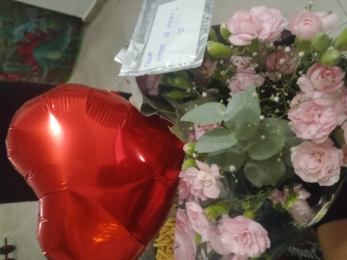 - "A red heart-shaped balloon sits beside a bouquet of pink carnations and baby's breath wrapped in clear cellophane" by FM-AZgE62, licensed under CC BY 4.0