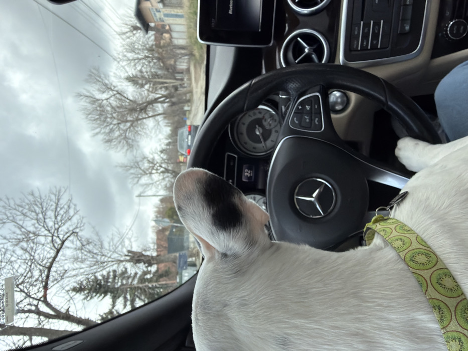 - "The image displays an interior perspective from the driver's seat of a Mercedes-Benz vehicle, looking out onto a residential street in Sofia, Bulgaria" by FM-qCCxh2, licensed under CC BY 4.0