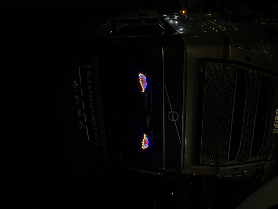 - "The image displays the front of a dark-colored Volvo FH "Globetrotter" truck at night, illuminated by its own lighting and custom accessories" by FM-Z0s923, licensed under CC BY 4.0