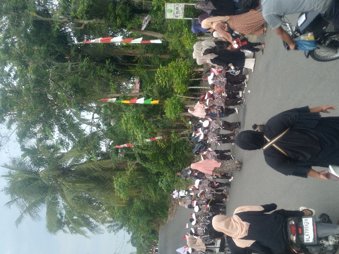 This image depicts an outdoor procession on a paved road in Keude Cunda, Indonesia