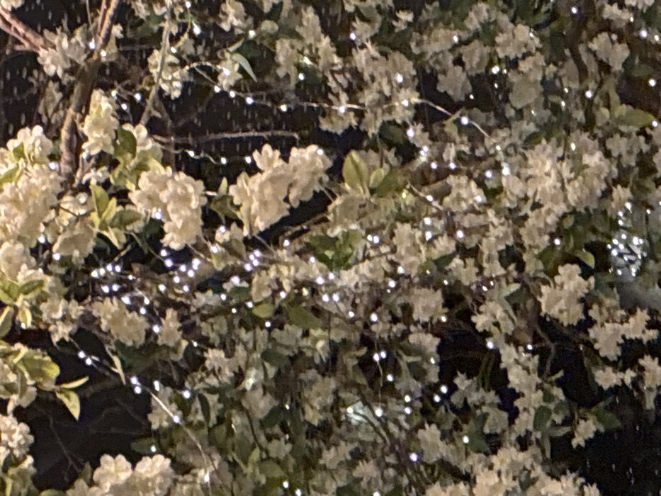 - "A dense arrangement of white flowers interspersed with small, glowing lights fills the frame" by FM-wUHTB2, licensed under CC BY 4.0