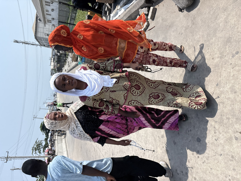 The image depicts an outdoor daytime scene in Jakande, Nigeria, specifically on a paved street or roadside