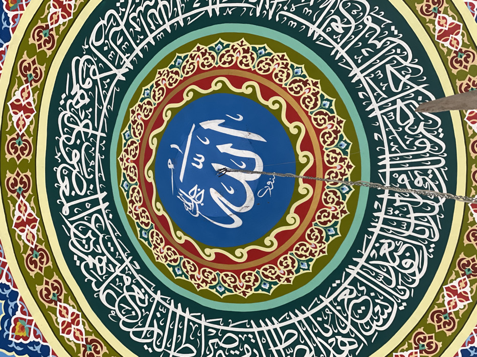 - "The image displays the intricately decorated interior dome ceiling of a religious structure in Kumbang, Indonesia" by FM-56aBo1, licensed under CC BY 4.0