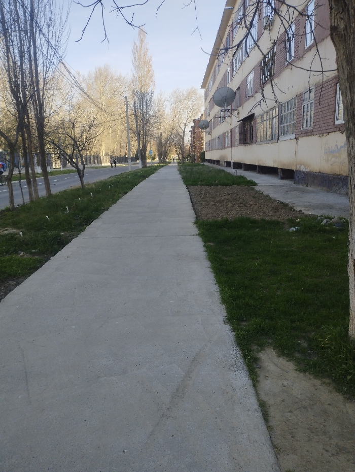 - "The image depicts a daytime street scene in Chirchik, Uzbekistan, characterized by a long concrete sidewalk flanked by vegetation and buildings" by FM-dqFph2, licensed under CC BY 4.0
