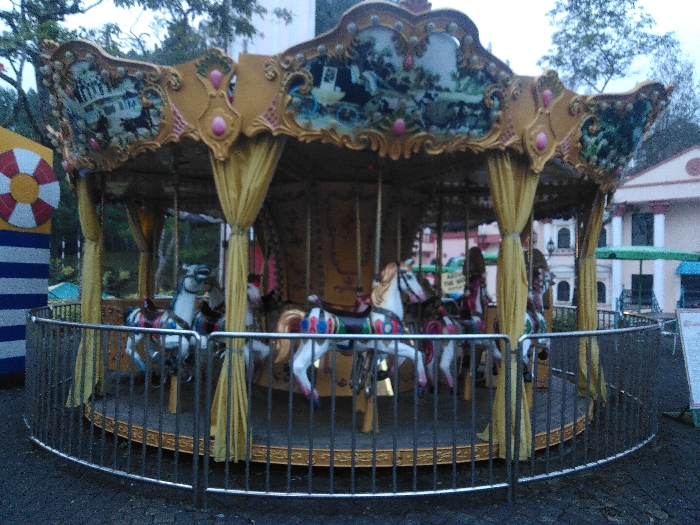 - "A stationary carousel stands outdoors, enclosed by a silver metal fence, located in Hulshorst, Netherlands" by FM-f7oWW2, licensed under CC BY 4.0