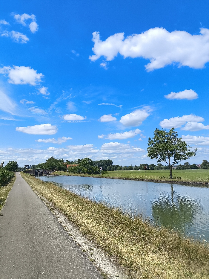 - "The image depicts a rural canal scene in Waltenheim-sur-Zorn, France, under a clear blue sky with scattered white cumulus clouds" by FM-NIq6z1, licensed under CC BY 4.0