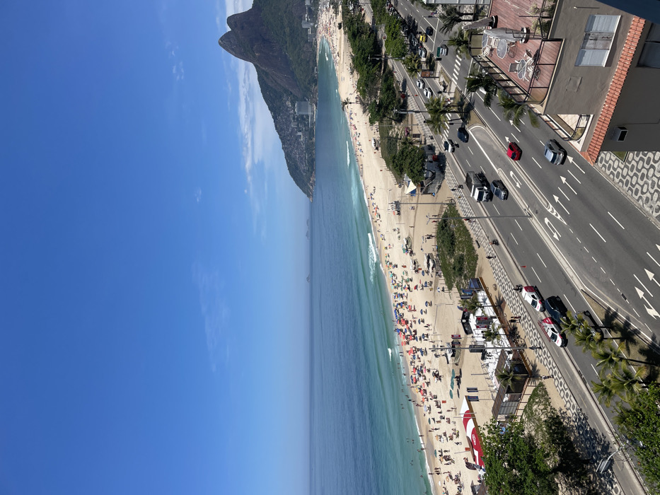 - "This image depicts an elevated view of Ipanema Beach and the surrounding urban environment in Rio de Janeiro, Brazil, under a clear blue sky" by FM-cli7Y2, licensed under CC BY 4.0