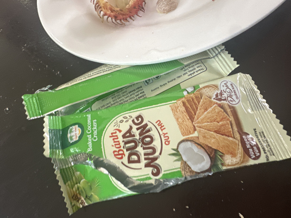 - "two packets of "Bánh Dừa Nướng Quý Thu" baked coconut crackers from Quang Nam, Vietnam" by FM-S4vcm1, licensed under CC BY 4.0