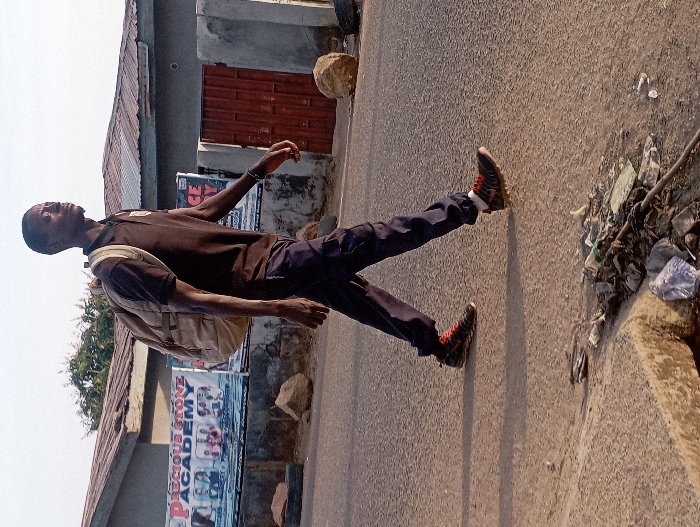 - "A male individual is depicted in mid-stride, walking from left to right across a paved road under daylight conditions in Jos, Plateau State, Nigeria" by FM-9JAB42, licensed under CC BY 4.0