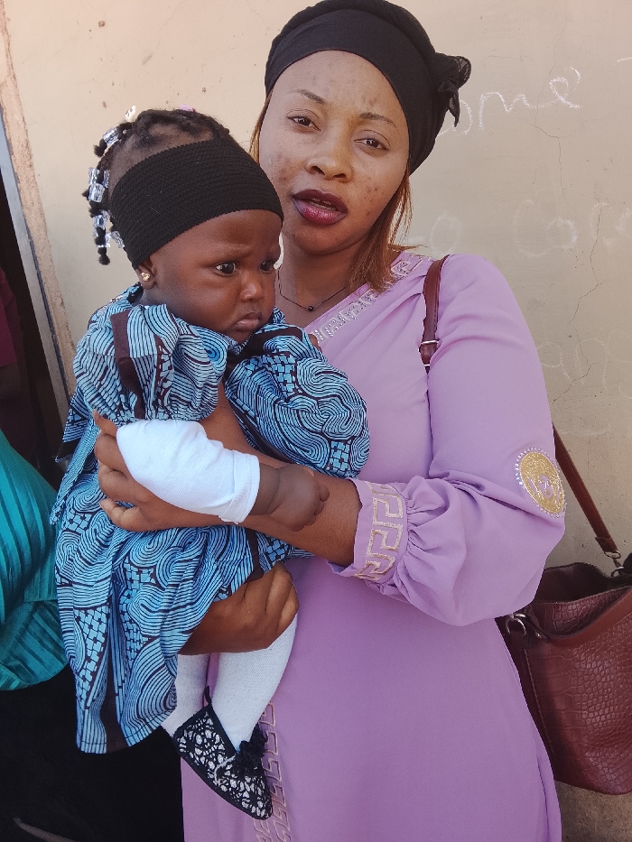 This image depicts an adult female holding an infant, located in Gwafan, Nigeria