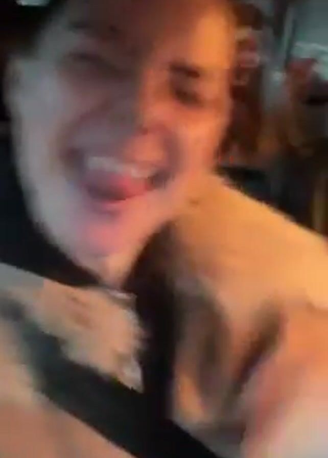 three women in a car, seemingly on a road trip, singing and dancing along to music. The camera begins by focusing on a woman in the back seat before panning to the driver, who is wearing glasses. The camera then returns to the back, where the woman is recording a video on her phone. All three women appear to be enjoying themselves.