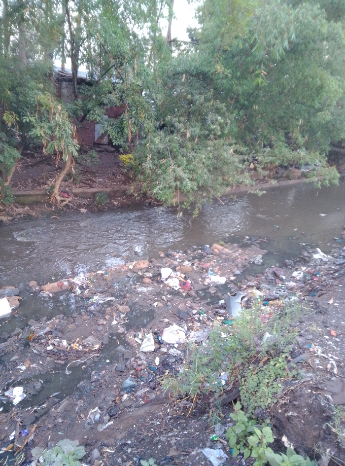 - "A polluted river flows with a heavy accumulation of garbage and debris" by FM-c9RUg1, licensed under CC BY 4.0