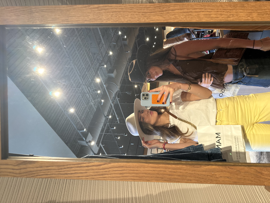 - "two young adult females captured in a mirror selfie inside a MANGO retail store, likely located at The Shops at La Cantera in San Antonio, Texas, United States" by FM-RVmgE3, licensed under CC BY 4.0