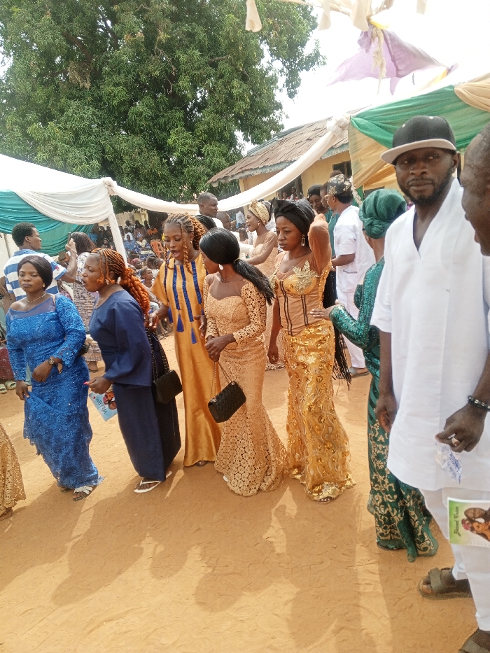 The image displays an outdoor social gathering in Akwanga, Nigeria