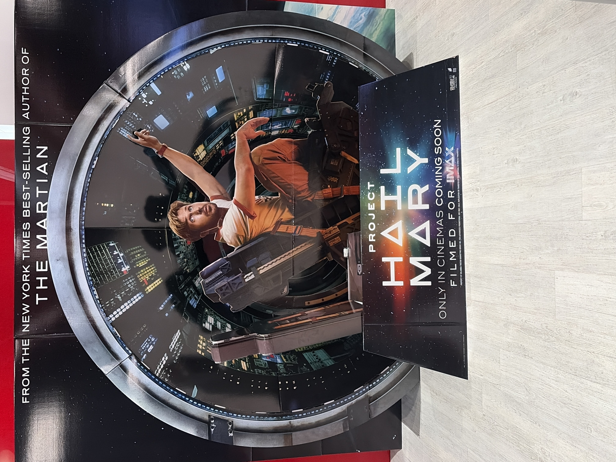 The image captures a movie poster for the film "Project Hail Mary" from the author of "The Martian