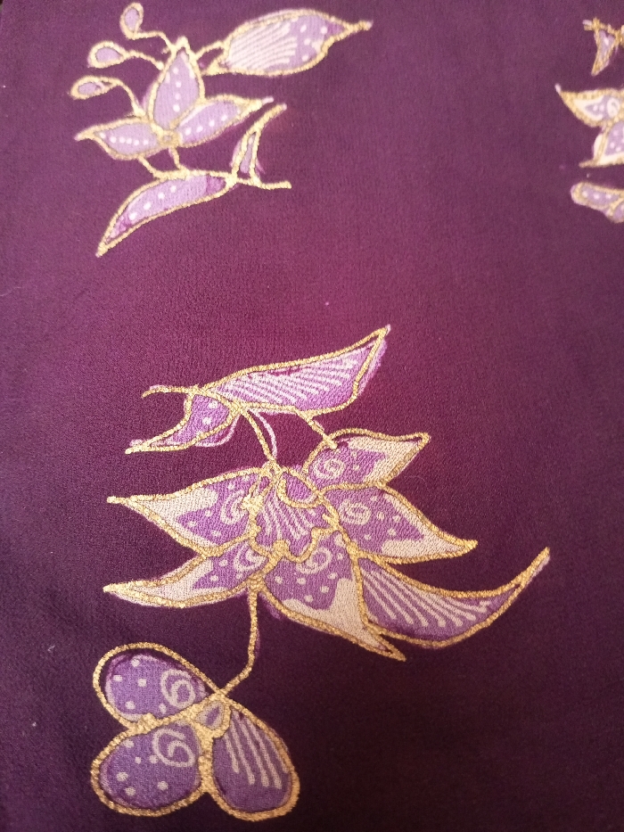 - "The image showcases a rich, dark purple fabric adorned with a repeating pattern of stylized floral motifs" by FM-sEE0K3, licensed under CC BY 4.0