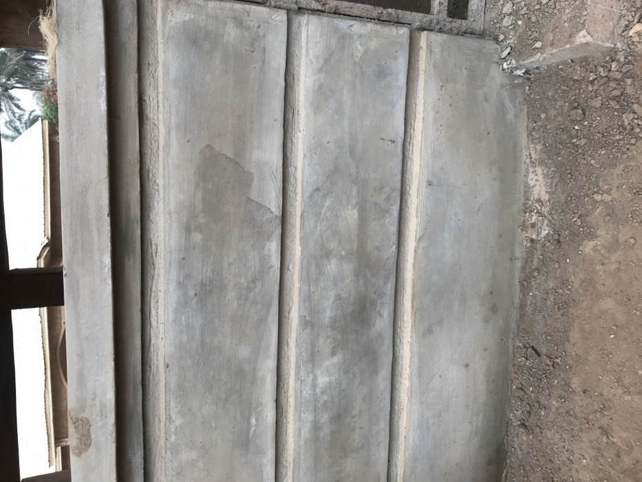 The scene in Ogodo, Nigeria, displays a close-up, ground-level view of a weathered grey concrete wall