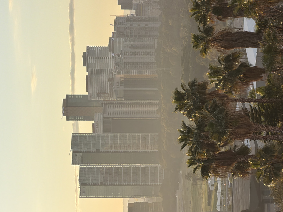 - "The image depicts a panoramic view of the Tel Aviv city skyline at either sunrise or sunset, characterized by a pervasive atmospheric haze and golden hour light" by FM-6wypx2, licensed under CC BY 4.0