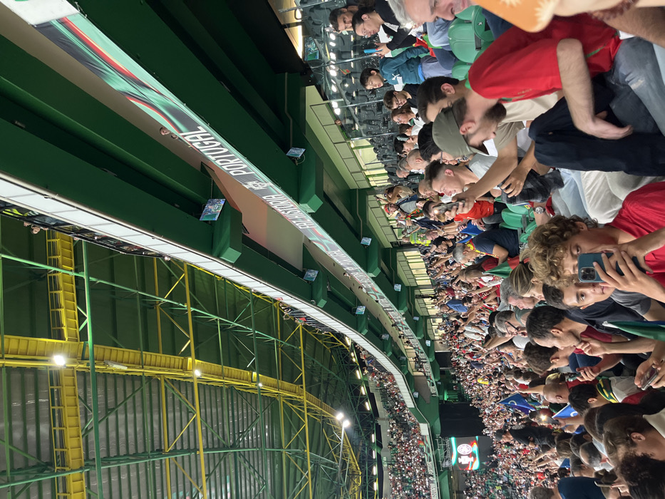 - "An elevated view captures a densely packed football stadium interior, identified as Estádio José Alvalade in Lisbon, Portugal, due to its distinctive green and yellow structural elements and visible "FAZ HISTORIA PORTUGAL" banner with a crest-like logo" by FM-XmQCg2, licensed under CC BY 4.0