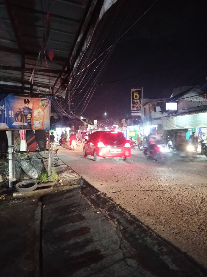 This image captures a nighttime street scene in Ciomas, Indonesia