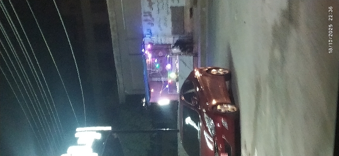 This image, taken at 22:36 on October 18, 2025, depicts a nighttime street scene in Al-Kiswa, Syria