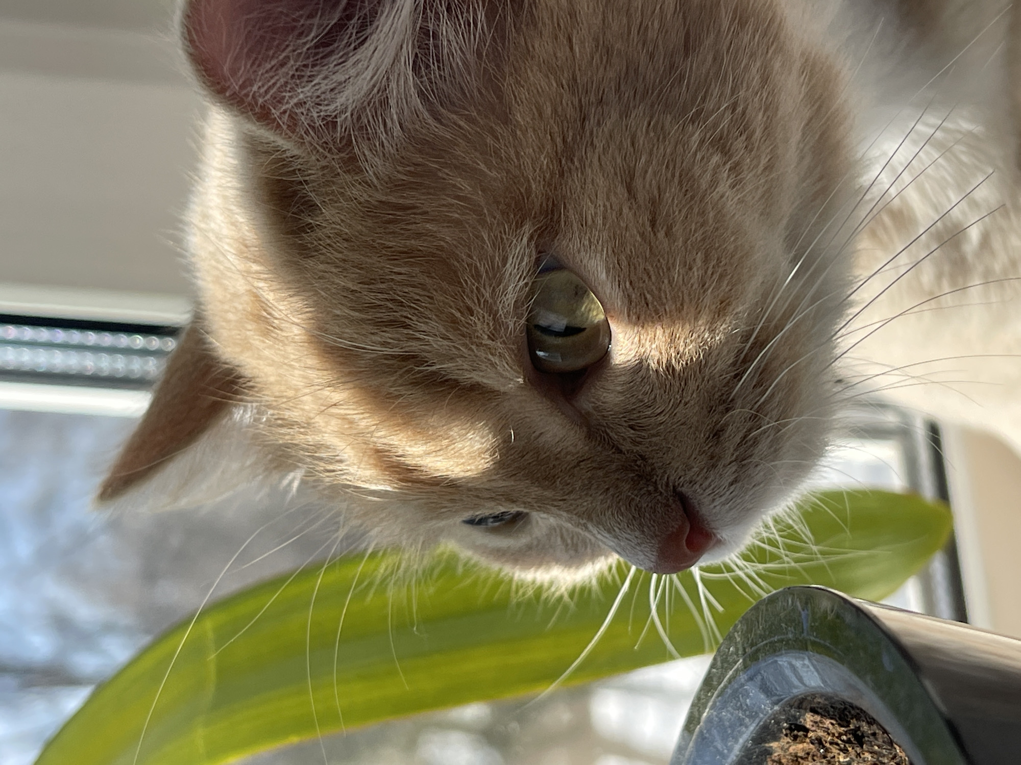- "The image displays a close-up, profile view of an orange and cream domestic cat positioned indoors by a window, gazing towards the left side of the frame" by FM-PtwQY2, licensed under CC BY 4.0