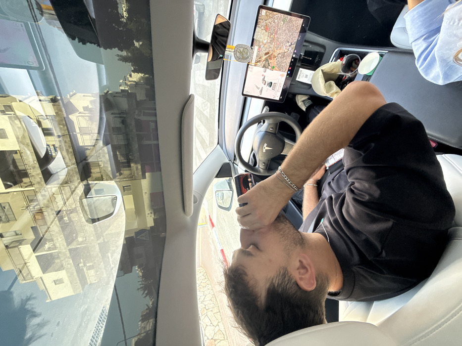 - "The image captures the interior of a white Tesla vehicle, appearing to be stationary, in an urban environment during daylight hours in Bnei Brak, Israel" by FM-ol5qd2, licensed under CC BY 4.0