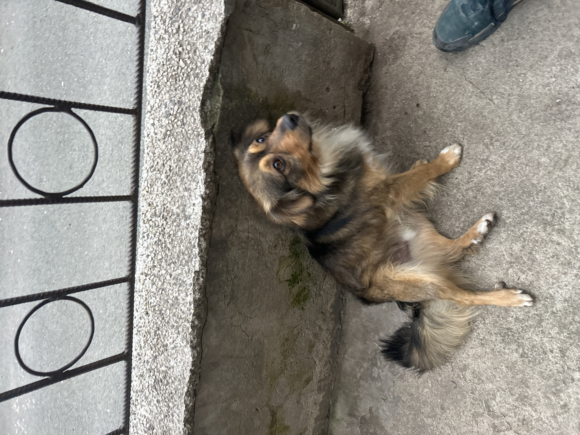 - "A brown and black dog is lying on its back on a gray concrete surface" by FM-n592m2, licensed under CC BY 4.0