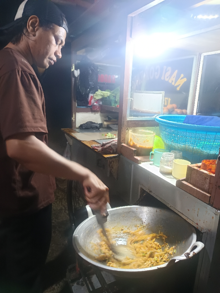 - "In Cianjur, Indonesia, an adult male is observed cooking at a street food stall at night" by FM-WRTkH2, licensed under CC BY 4.0