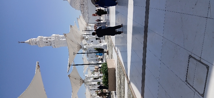 - "The image displays an expansive outdoor courtyard of the Prophet's Mosque (Al-Masjid an-Nabawi) in Medina, Saudi Arabia" by FM-DHzUs1, licensed under CC BY 4.0