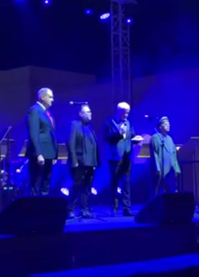 stage with four men standing on it