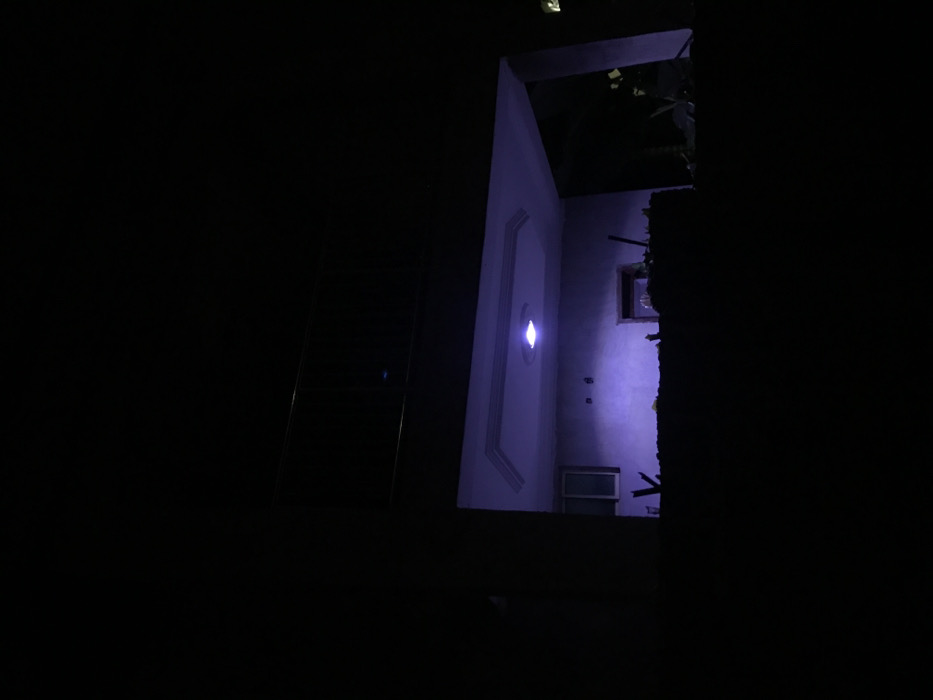 - "A nighttime exterior view in Lokoja, Nigeria, depicts a section of a building's interior, brightly illuminated by a central, ceiling-mounted purple light fixture" by FM-2K2SF3, licensed under CC BY 4.0