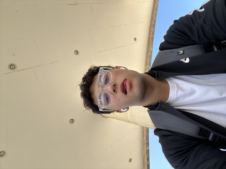 - "A young adult male with dark, curly hair and clear-framed eyeglasses is depicted in a close-up, upward-angled shot in Jibb as-Safa, Syria" by FM-EsaHu1, licensed under CC BY 4.0