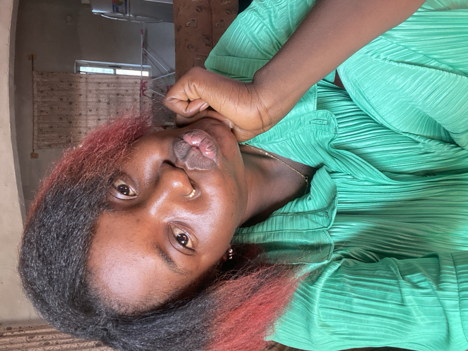 - "A woman with dark hair accented by reddish-pink highlights poses for a close-up, tilted selfie" by FM-nrUyz2, licensed under CC BY 4.0