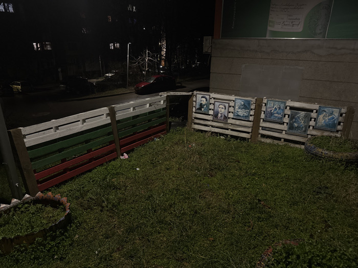 - "The image depicts an outdoor nighttime scene in Pleven, Bulgaria, showcasing a makeshift display of national and historical significance" by FM-8QUkP2, licensed under CC BY 4.0