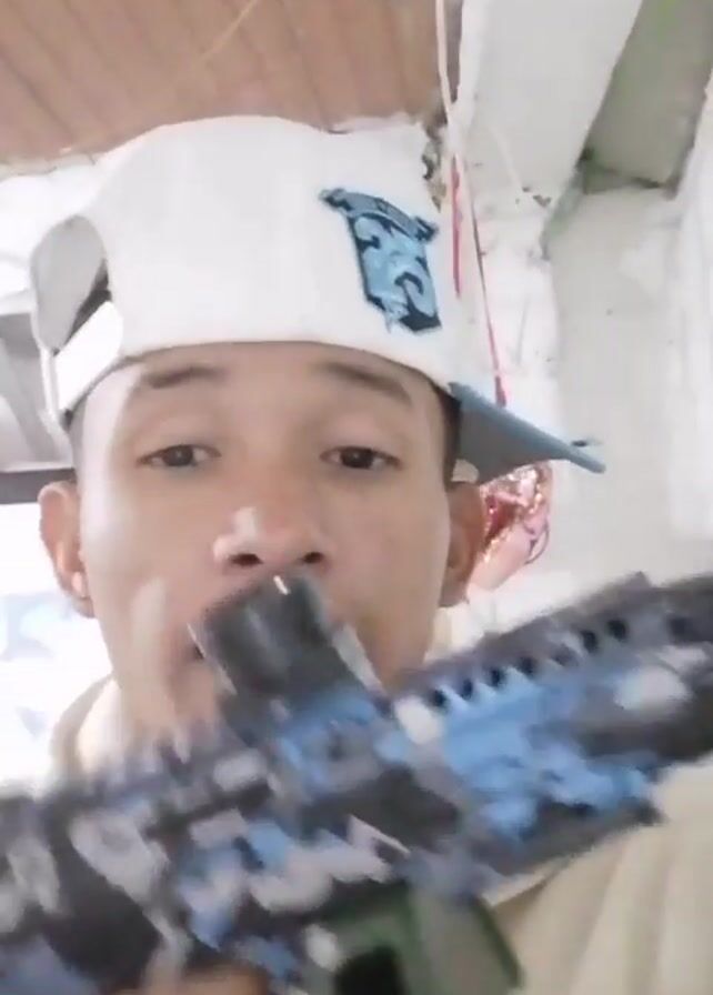 - "A young man wearing a white baseball cap and a beige hoodie is standing indoors and holding a blue toy gun" by FM-fnOaw2, licensed under CC BY 4.0