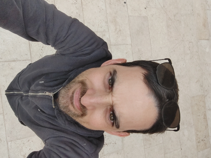 - "A male subject is depicted in a high-angle shot, looking upwards towards the camera, against a light-colored tiled ground in Rosh HaAyin, Israel" by FM-3Ip2o1, licensed under CC BY 4.0