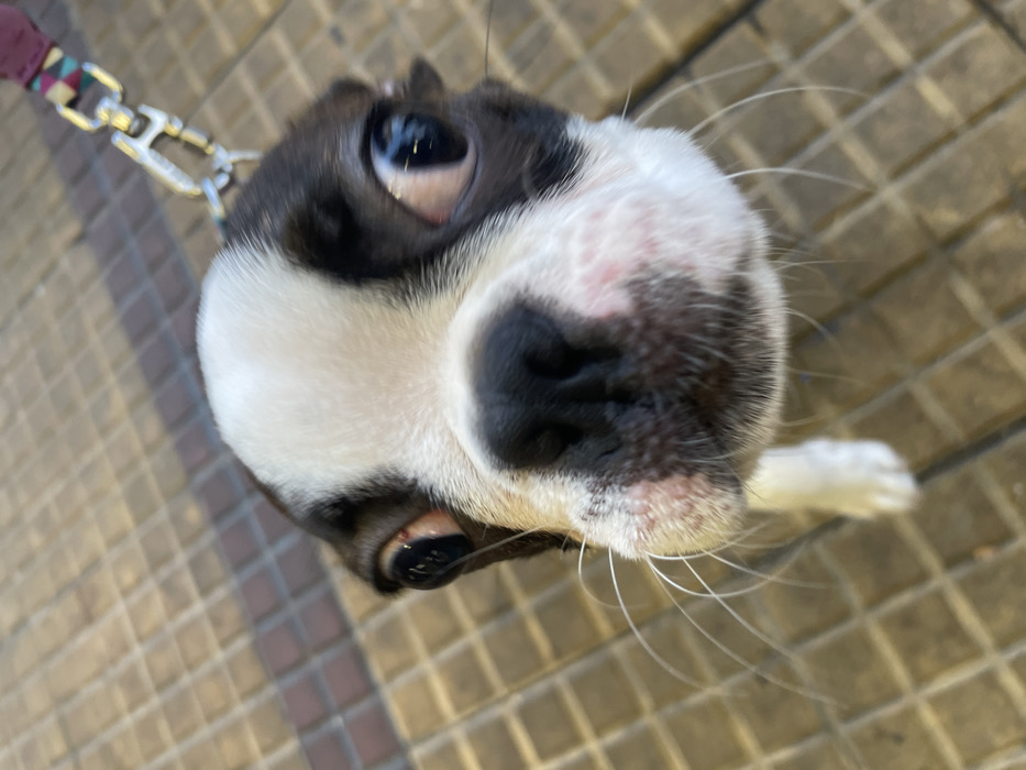 - "This image presents a close-up, low-angle view of a Boston Terrier dog located on a paved outdoor surface in São Paulo, Brazil" by FM-iYMz92, licensed under CC BY 4.0