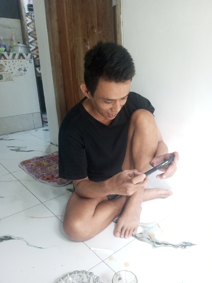 - "A man sits cross-legged on a tiled floor, focusing on a handheld device" by FM-WPxfq1, licensed under CC BY 4.0
