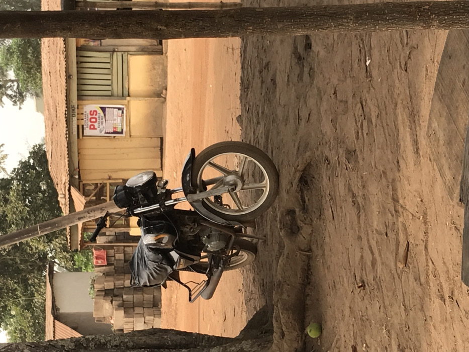 - "A motorcycle is parked on a dirt road in front of a building with a yellow exterior" by FM-eGIJq1, licensed under CC BY 4.0