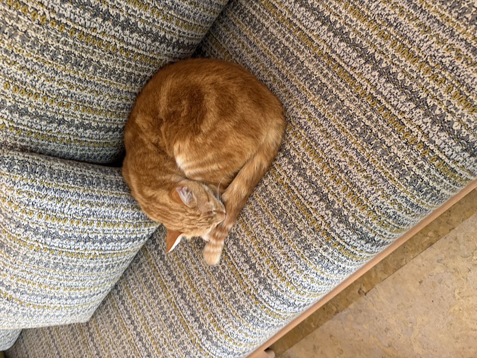 - "An indoor scene in Marrakesh, Morocco, shows a single orange tabby cat sleeping" by FM-IXb3V2, licensed under CC BY 4.0