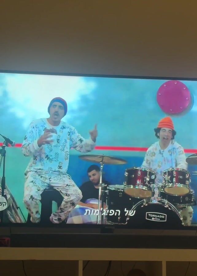 A person filmed a television showing a music video