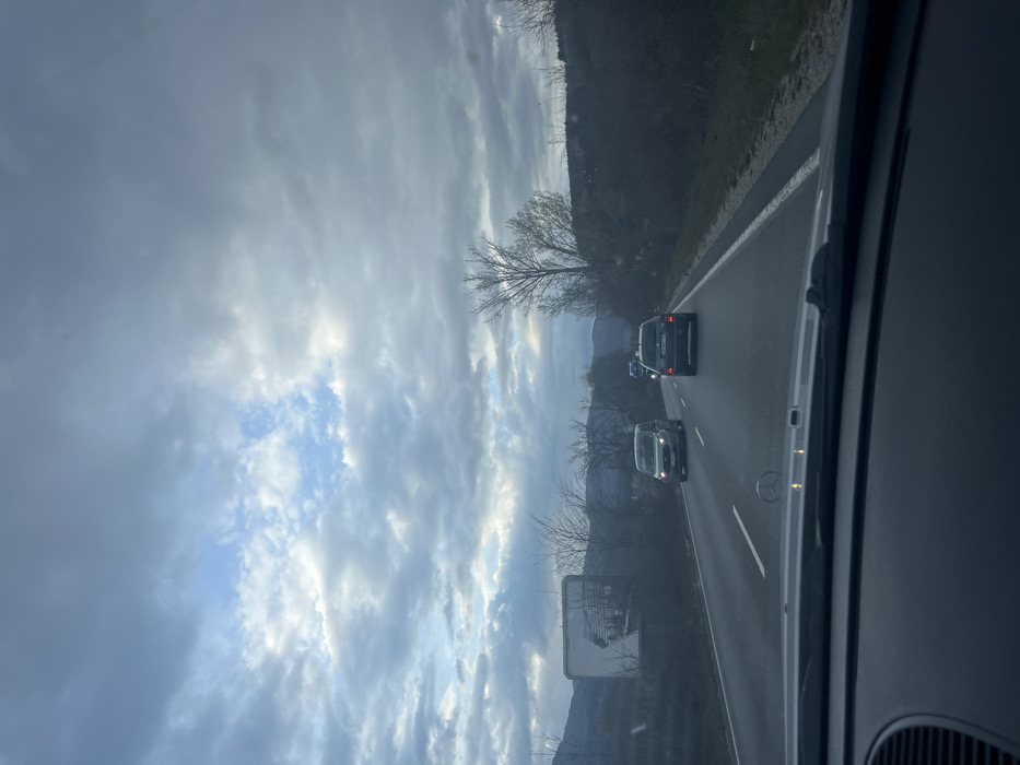 - "The image, captured from the interior of a vehicle displaying a Mercedes-Benz hood emblem, presents a roadway scene in or near Cherniche, Bulgaria, under an overcast sky with fragmented patches of brighter blue and white clouds" by FM-bcBuz2, licensed under CC BY 4.0