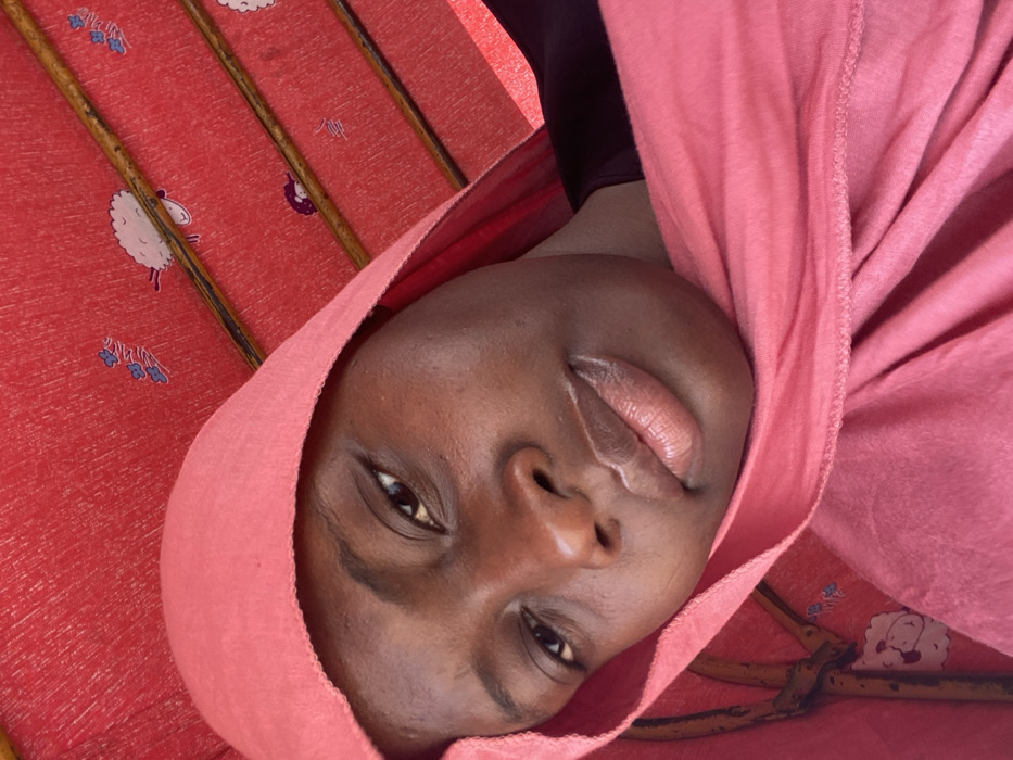 The image displays a close-up, angled view of a single individual situated within an enclosed space in Katcha, Nigeria