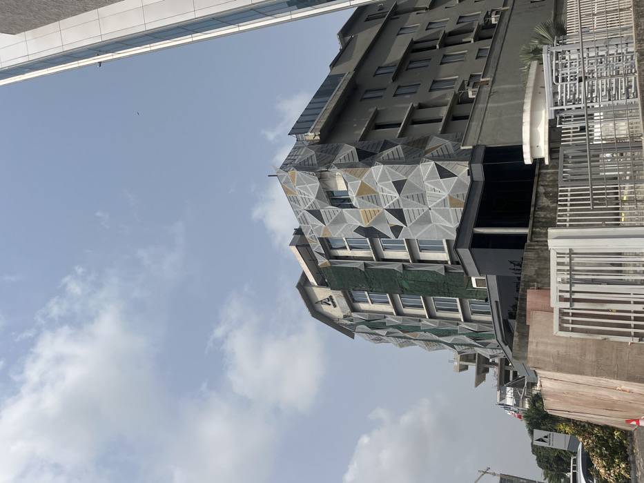 An outdoor, eye-level shot captures a multi-story building identified as "ITIRIN Suites & Residences" located in Itirin, Nigeria, under a partially cloudy, light blue sky