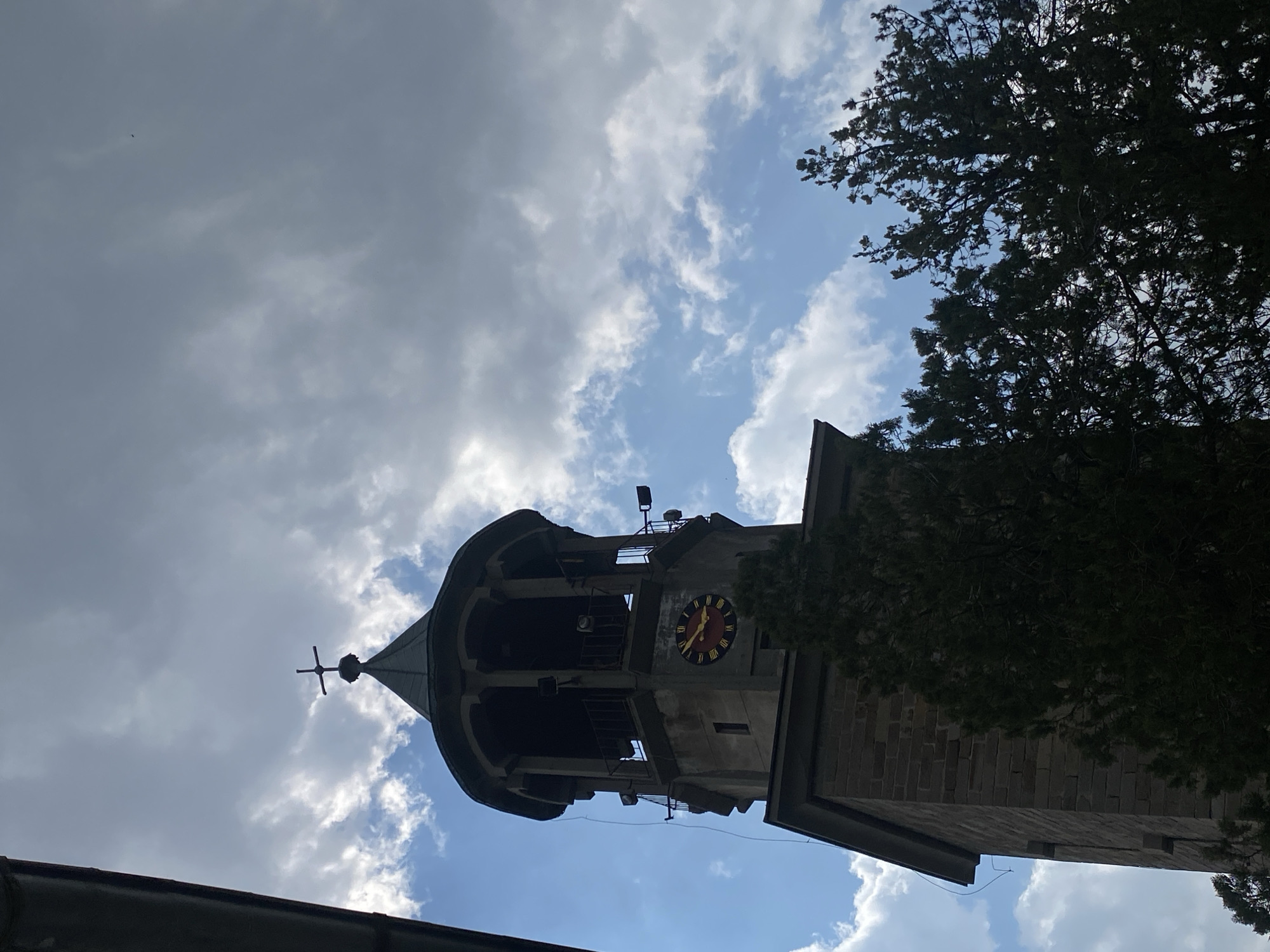 - "The image is a worm's-eye view of a stone bell tower with a clock, located in Lyaskovets, Bulgaria" by FM-PFEbq2, licensed under CC BY 4.0