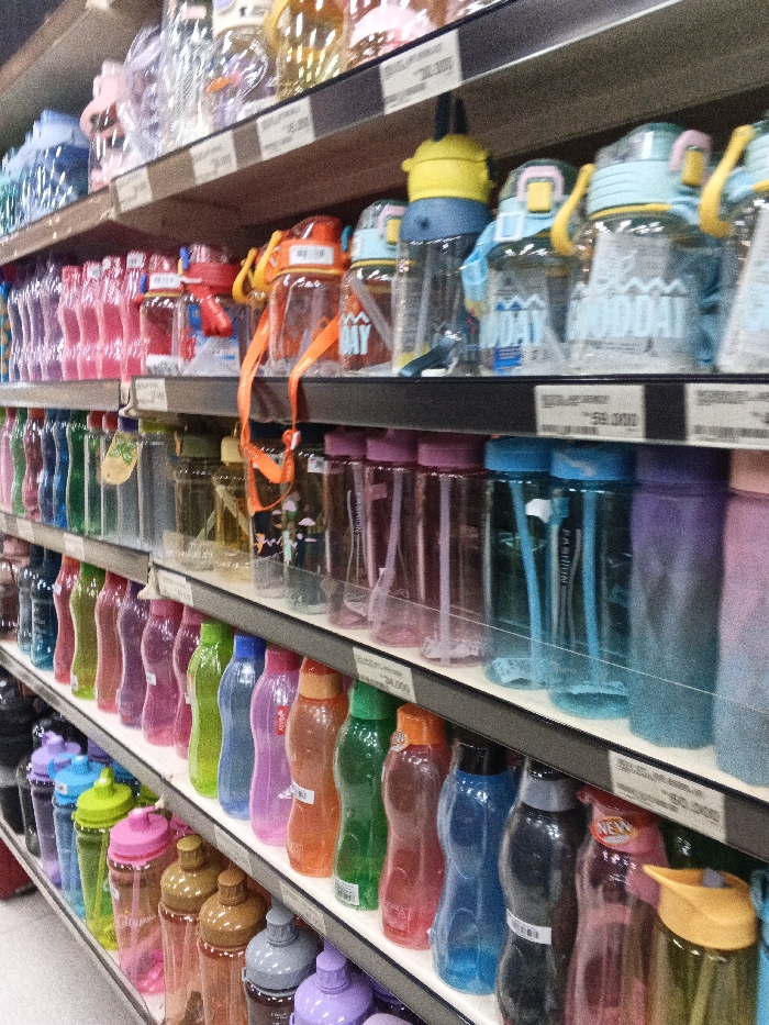 - "Shelves stocked with an array of colorful water bottles are displayed in a retail setting" by FM-9JZNW2, licensed under CC BY 4.0